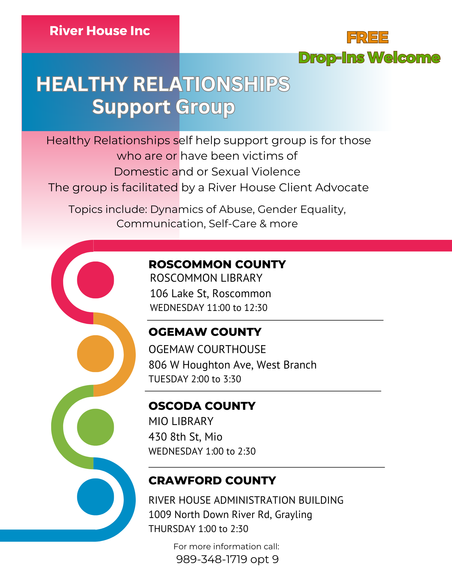 Healthy Relationships Support Group-River House-Roscommon, West Branch, Mio, Grayling