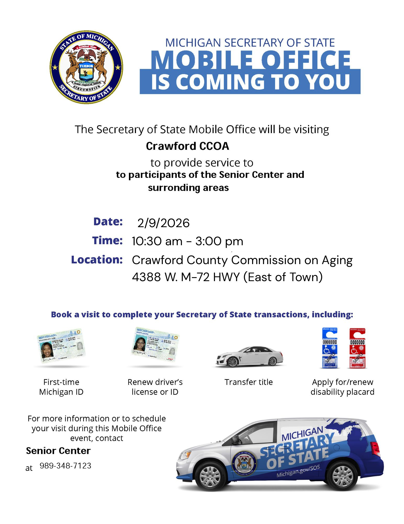 2/9/26, Mobile SOS Office, Crawford COA, 1030am-3pm.