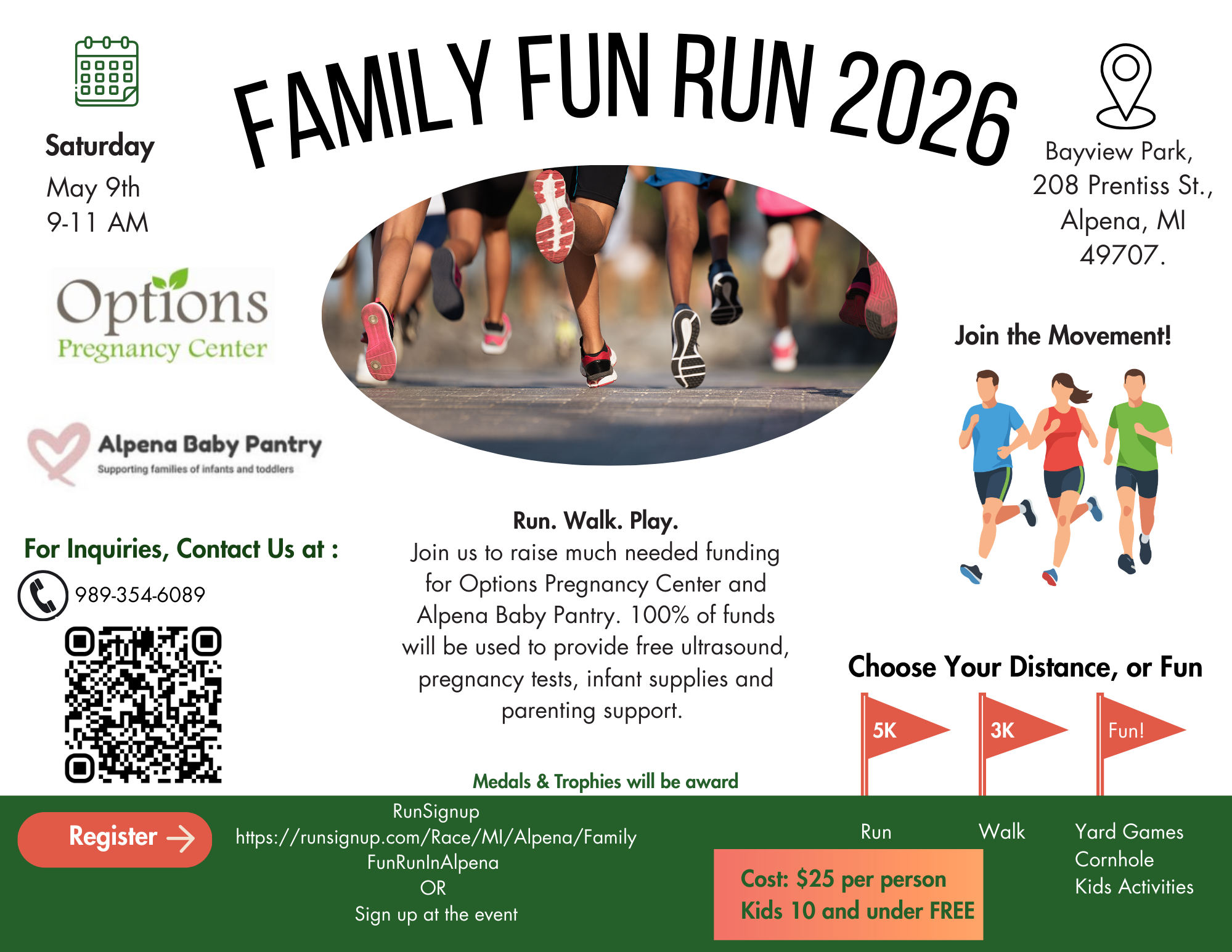 5/9/26, Family Fun Run, Bayview Park- Alpena, 9am.