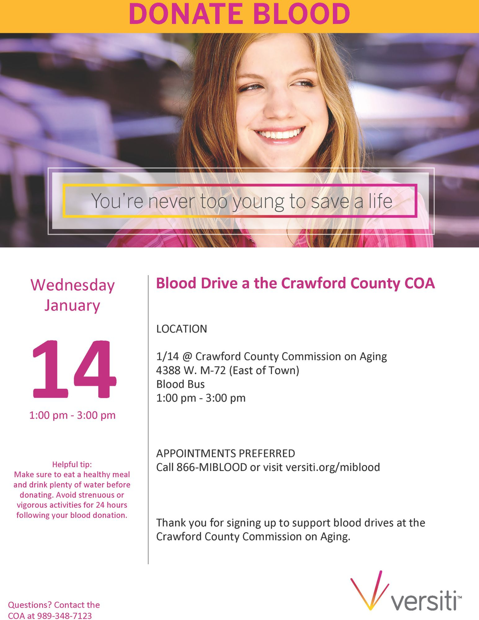 1/14/26, Blood Drive, Crawford County Commission on Aging, 1-3pm.