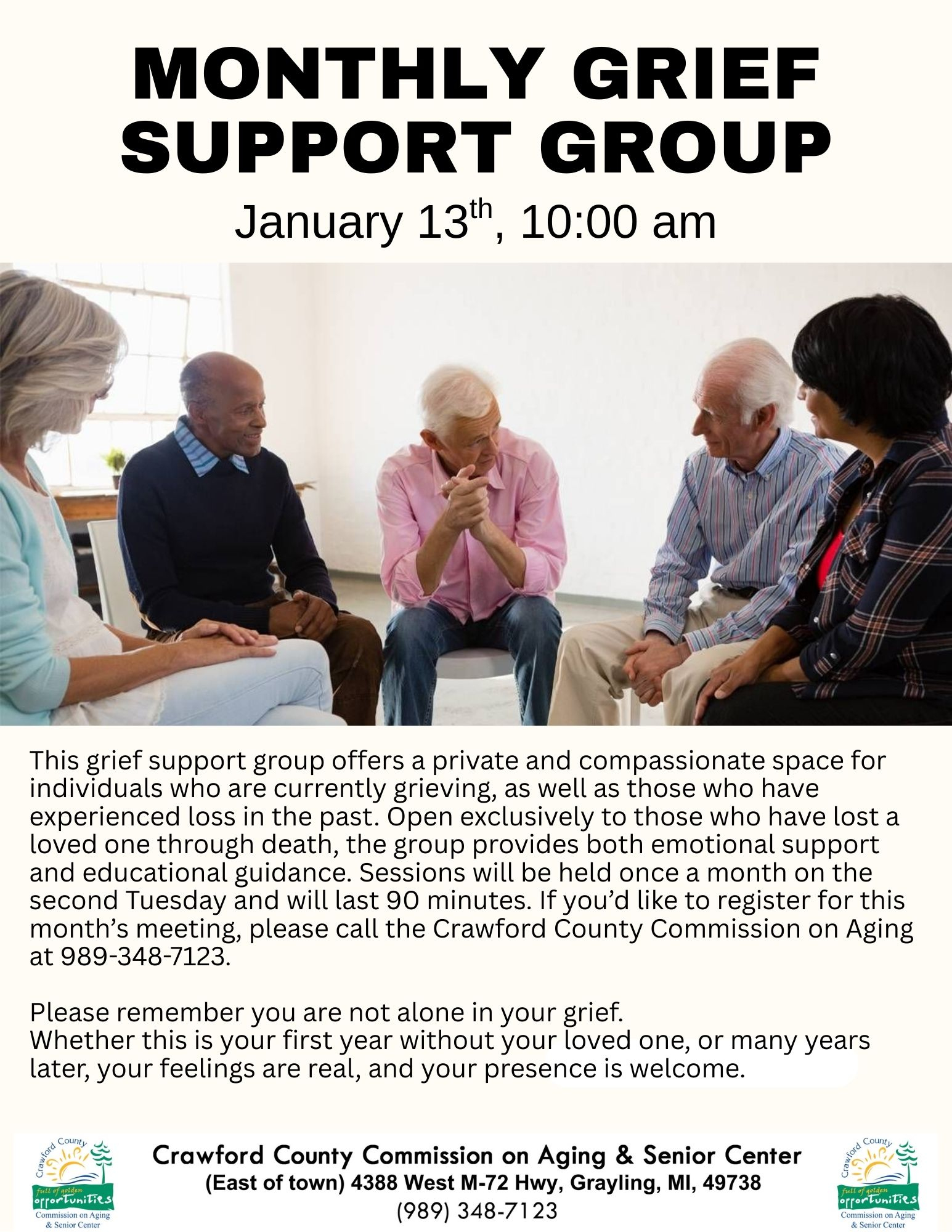 1/13/26, Monthly Grief Support Group, Crawford COA, 10am.