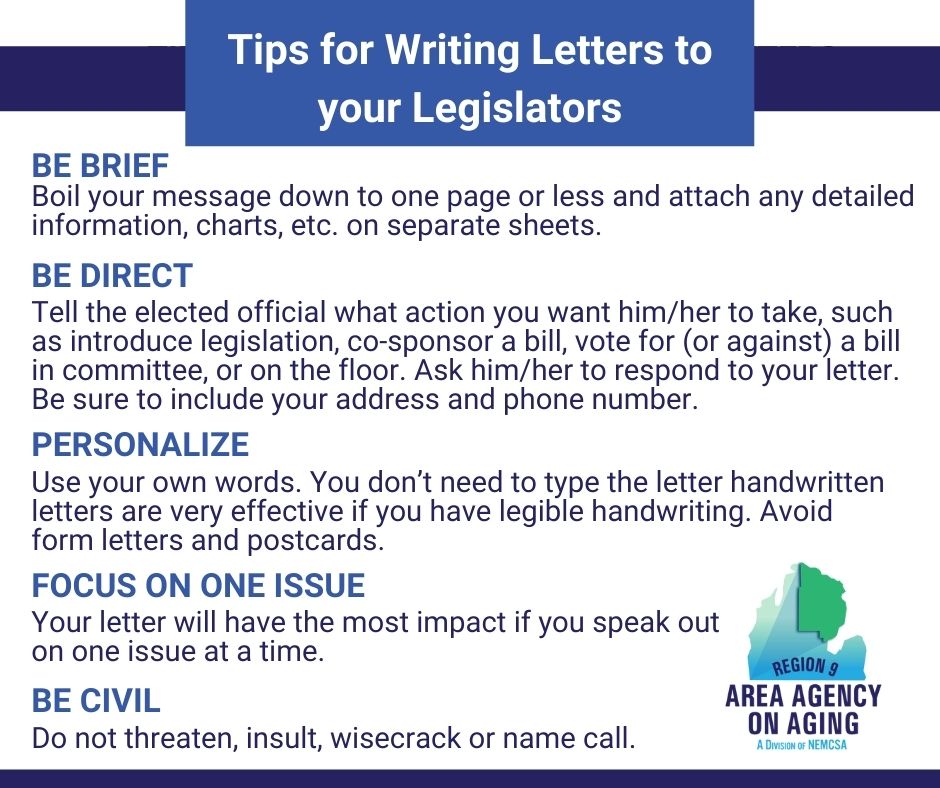 Region 9 Area Agency on Aging participates in advocacy efforts that impact seniors and persons with disabilities. However, we strongly encourage you to join us to advocate for Northeast Michigan's older adults.
